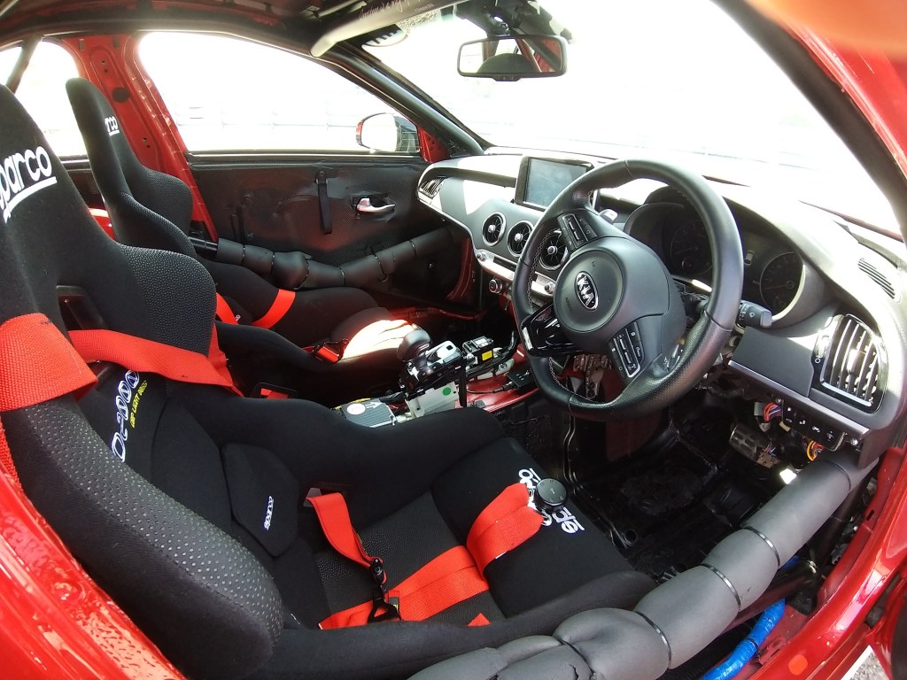 Even before you fire up the engine, you know the GT420 is something very different. Its aggressive aero kit, which includes a front splitter, prominent rear diffuser and lip spoiler, gives off the appearance of a replica touring car. And then there’s the sound… The standard exhaust has been replaced by a lighter version from Miltek with the catalysts removed, letting the V6 breathe freely. It’s an angry-sounding engine, emitting a baritone growl that reverberates around the stripped-out cabin. You will have certainly never heard a Kia like this before.